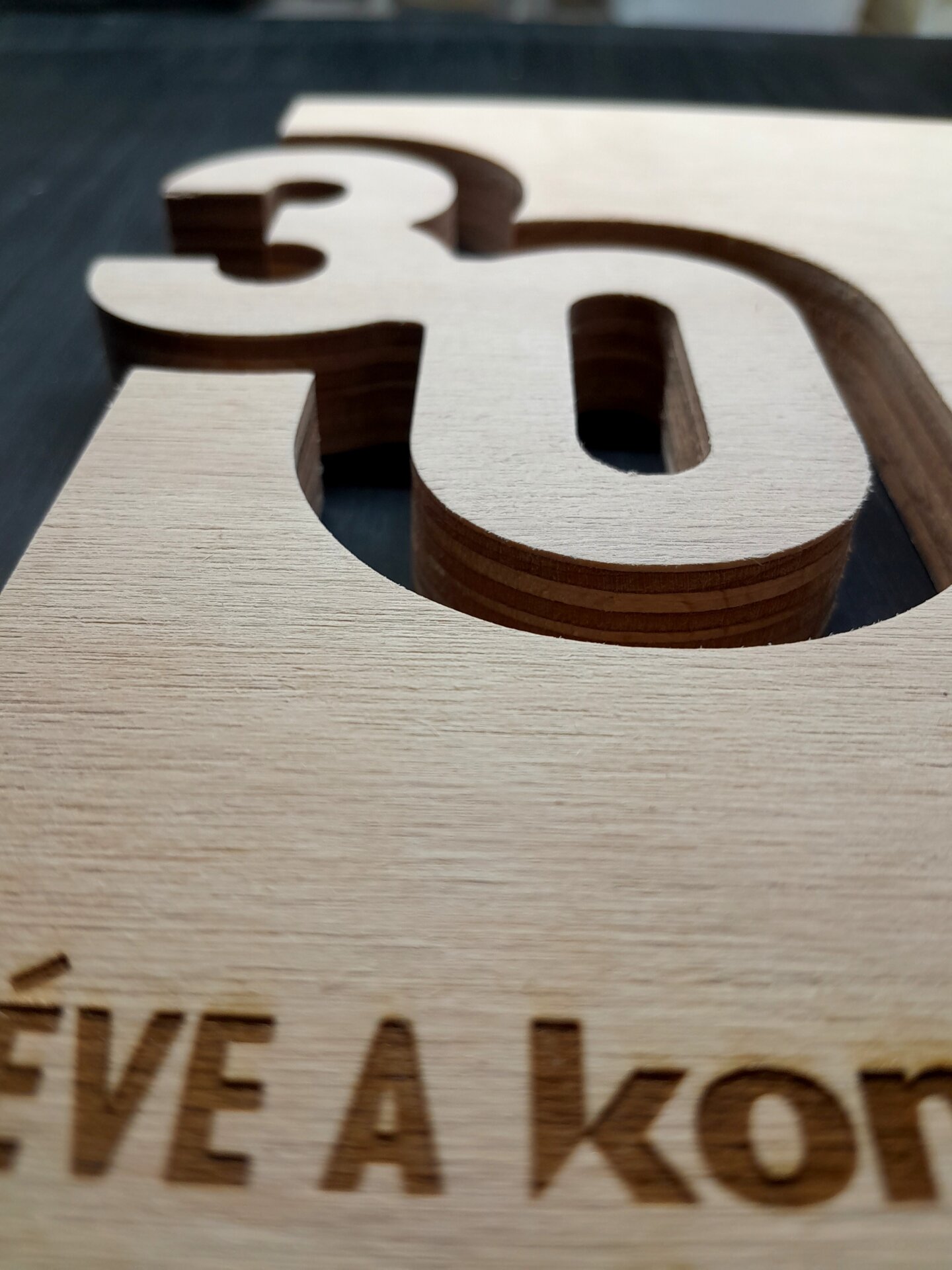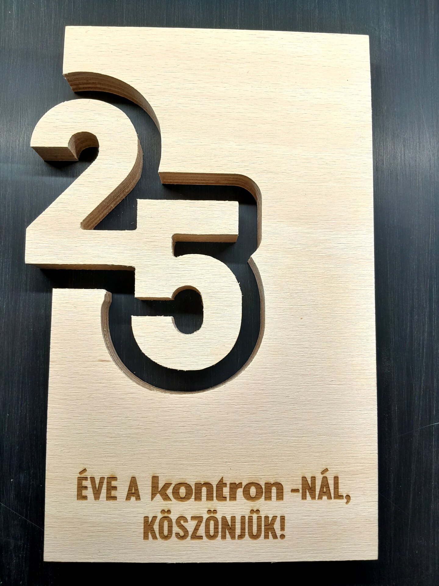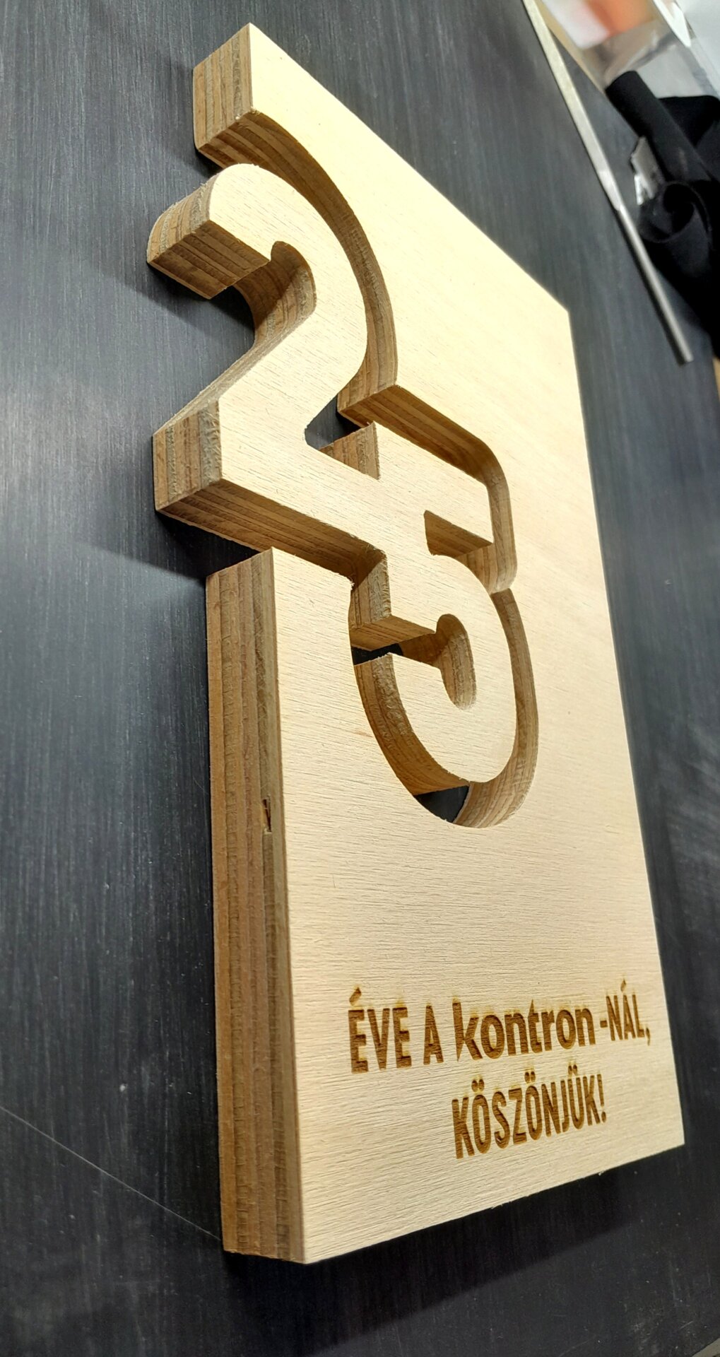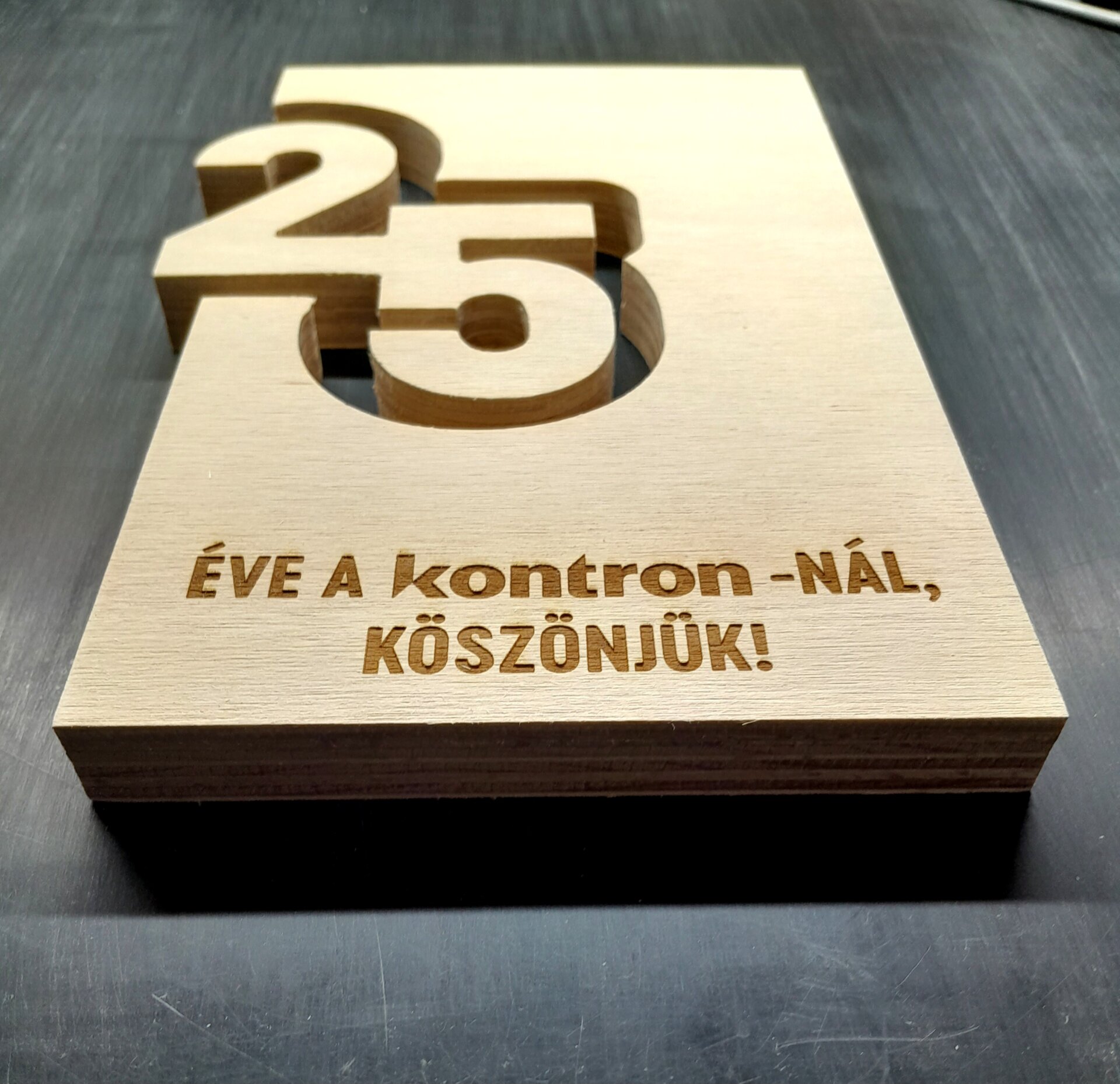 Fa díj kivágása és gravírozása 25. illetve 30. évfordulóra.